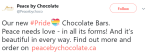 vanhalenofficial Uncategorized June 22, 2018December 5, 2018 1 Minute thejusticethatissocial: You can buy Peace by Chocolate’s Pride Bars here! While quantities last. https://peacebychocolate.ca/ Share this: Share on X (Opens in new window) X Share on Facebook (Opens in new window) Facebook Like Loading... Related Published by vanhalenofficial View all posts by vanhalenofficial Published June 22, 2018December 5, 2018