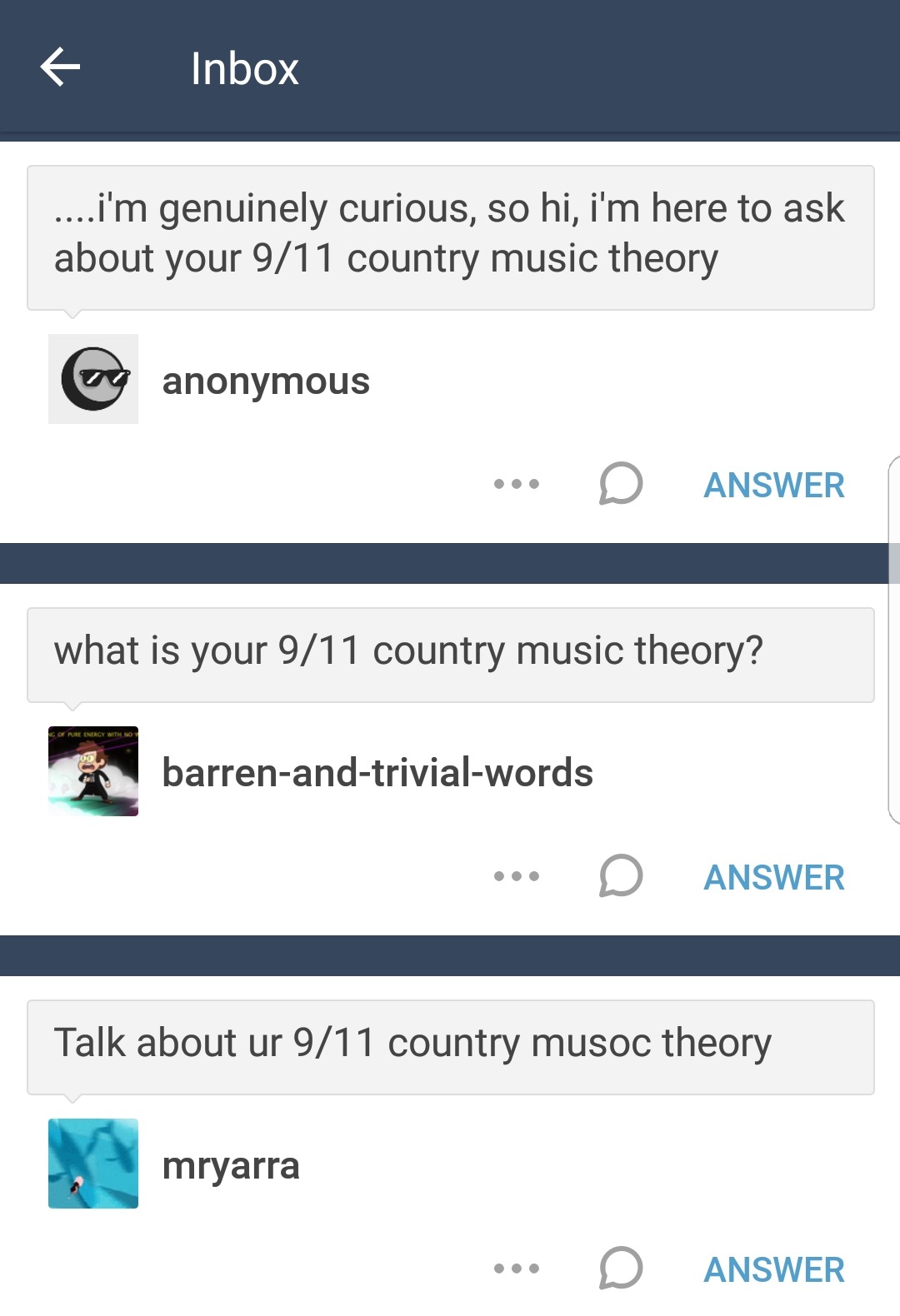 Can confirm. Alan Jackson and Toby Keith, the blacklisting of Dixie Chicks, literally the only singer I can think of that ever spoke out against anything from 2001-2010 was Johnny Cash. I’d also say that the uber-patriotic stance lead to the shiny, vapid County Boy® nonsense that lead to so many of the solo artists all sounding and looking the same.