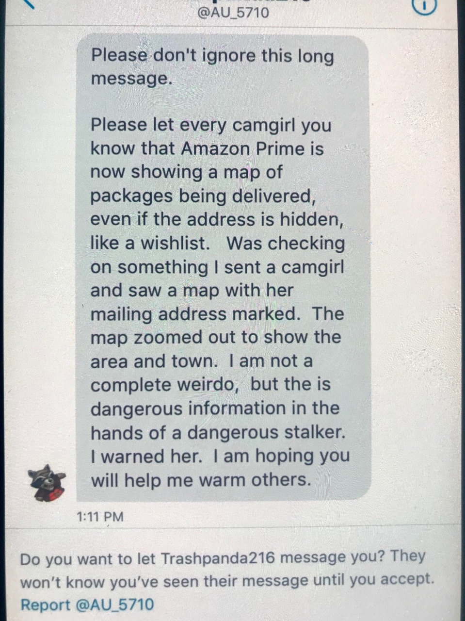 IT IS TRUE. I do it with my packages. That’s why I have them hold packages from men at the facility
