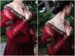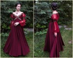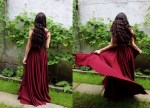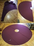 Making the burgundy dress.