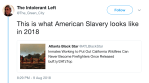 The idea that people taken away from their families and imprisoned and forced into labor sometimes experience moments of relief when they aren’t being actively punished does not mean they “love” or are “happy” performing countless hours of unpaid fucking labor.