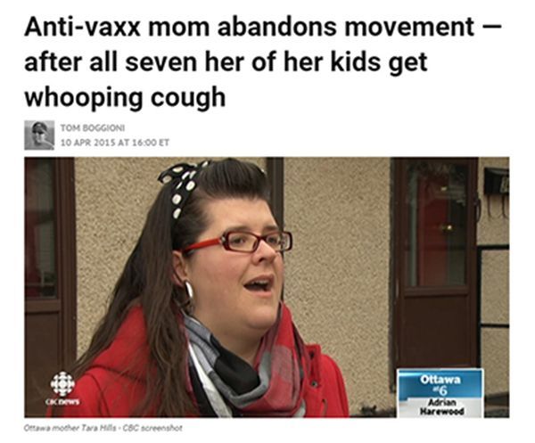For the record, she actually abandoned the movement BEFORE they all got whooping cough, but abandoned it too late. There’d been a breakout of measles in her area that caused her to reassess, and she and her doctor had already drafted and started a catch-up vaccination schedule, but her kids caught whooping cough just before it could be started. Then she wrote a blog post for The Scientific Parent explaining how she and her husband had come to wrong decisions in the first place, how they changed their mind, the consequences they suffered as a result, and asking other parents to please vaccinate their kids. And now she’s an activist for destroying the misinformation of anti-vaxxers, and reaching out to anti-vaxxers because she’s understands their fears but knows their kids deserve better.