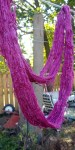 I was technically aiming for more of a red (the Eleanor of Toledo stockings I’m making are usually described as crimson), but this fuchsia is so stunning that I have no complaints whatsoever. One snag was that, though I tied it very loosely, the nylon securing my skeins twisted and tightened, causing some tie-dyeing of the skeins. This may or may not be noticeable once knit, but seeing as the skeins were all the same size it should at least be mostly regular.