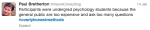 – I have had a professor buy a huge fuckoff bottle of rum during fieldwork in Costa Rica and let the undergrads get wasted because “you’re not underage in Costa Rica and we’ll be up all night with the bats anyway!”
