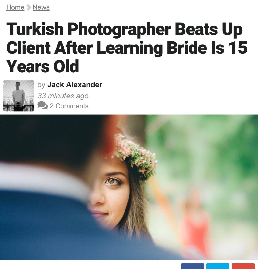 Hurriyet Daily News reports that Albayrak had been hired to photograph the July 5th wedding at Turgut Özal Nature Park in the eastern Turkish province of Malatya. On the day of, when he noticed that the bride-to-be didn’t look like an adult, he asked the groom her age and learned that she was only 15.