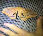 Ready for another caterpillar flavor? I found a Polyphemus moth laying eggs on the side of my house. Brought her inside, put her in an enclosure while I grabbed a paper bag (easier to collect eggs on paper!!!), and she laid FIVE eggs in the 10 seconds it took me to get back to her.